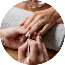 Gepflegte Hände mit klassischer Maniküre, Feilen und auf Wunsch Shellack – für ein sauberes, frisches Erscheinungsbild Ihrer Nägel.