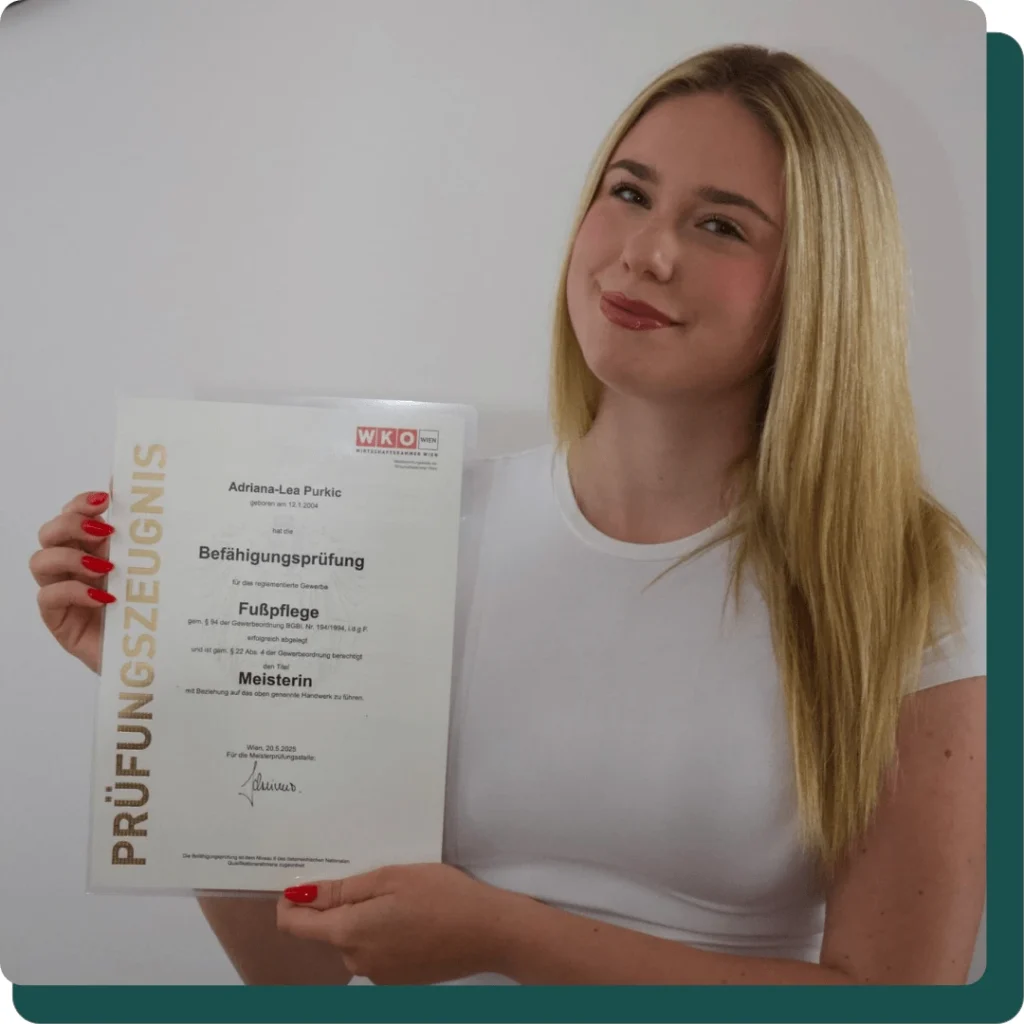 Mein Name ist Adriana, staatlich geprüfte Podologin mit über 6 Jahren Erfahrung.